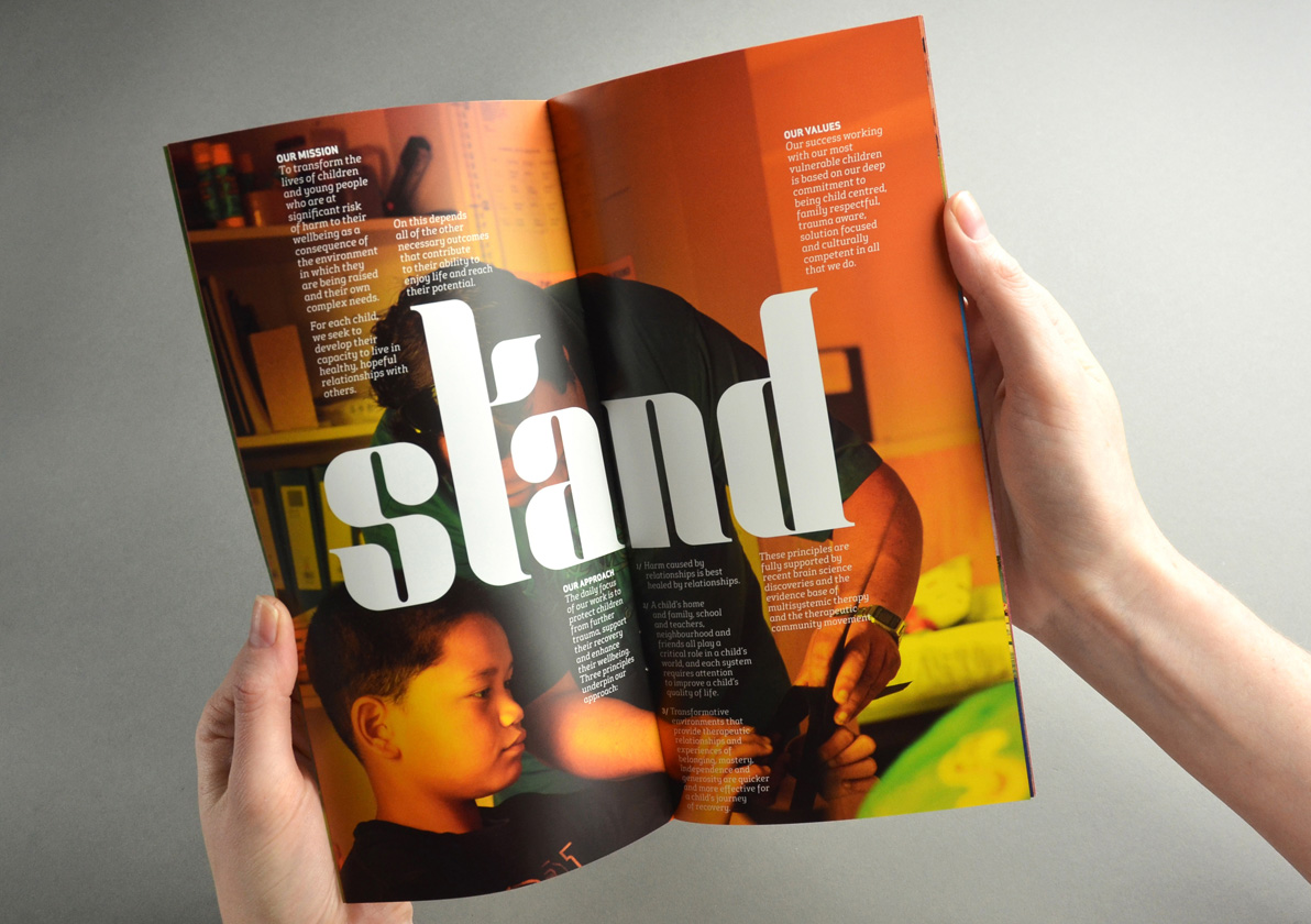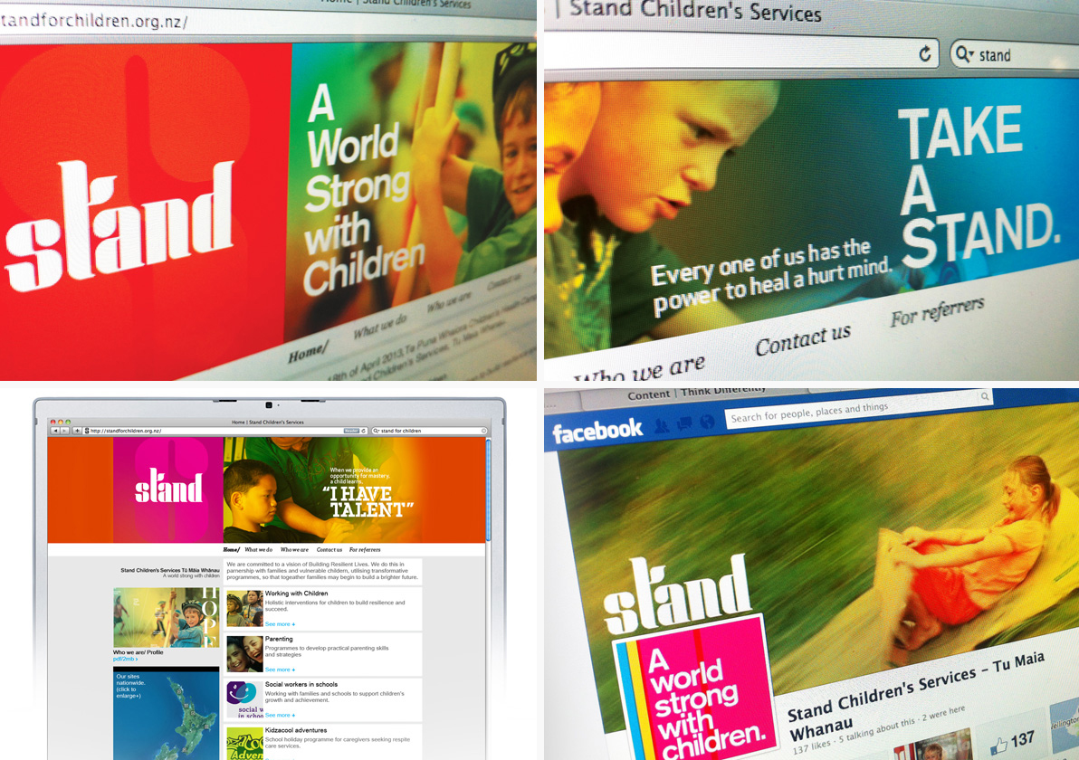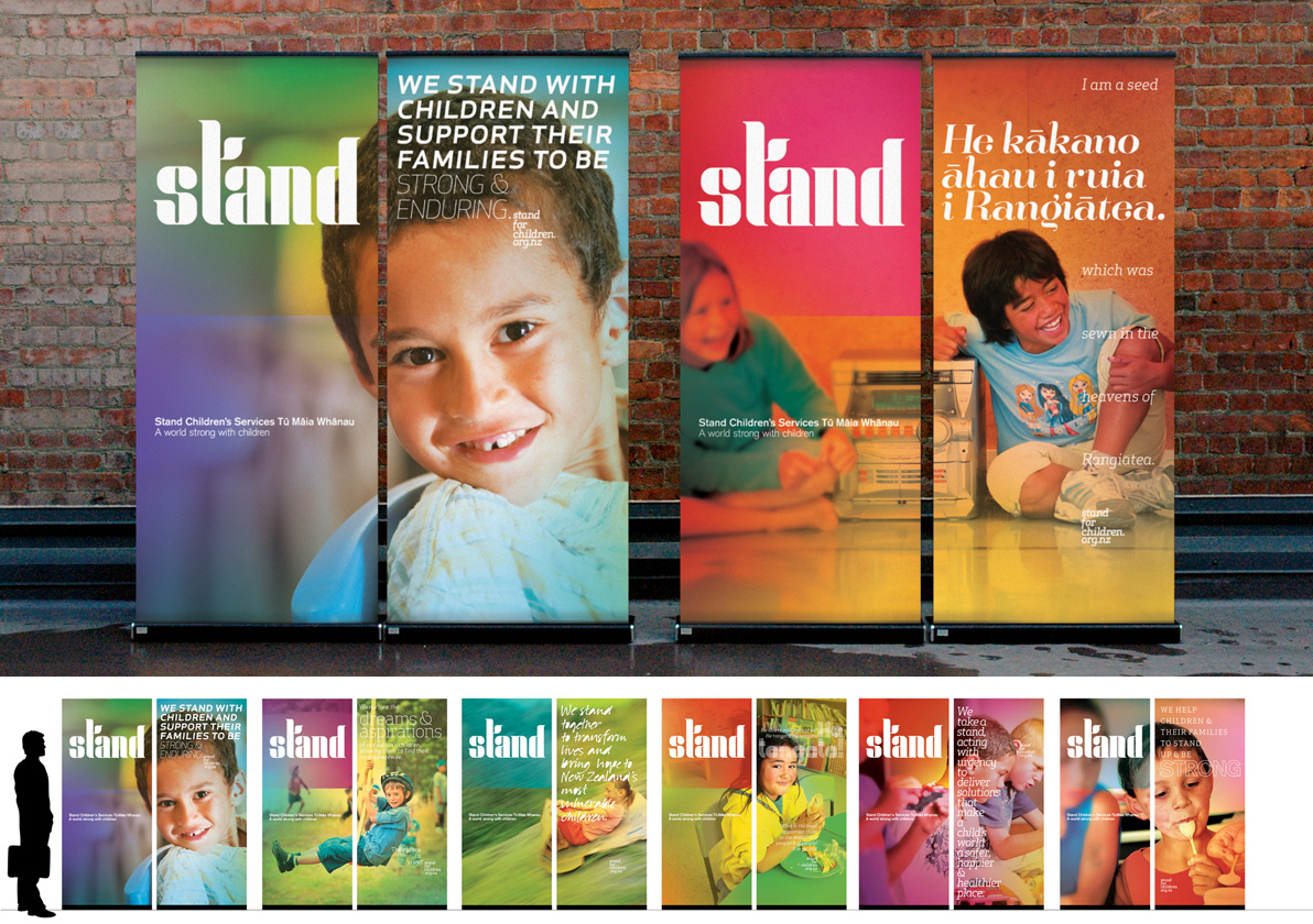 We wanted to convey a real sense of urgency and Stand, as both a noun and a verb, isn’t just a name but also a call to action. Coupled with a clear descriptor, Stand Children’s Services Tu Maia Whanau works from both an emotive and functional perspective.
