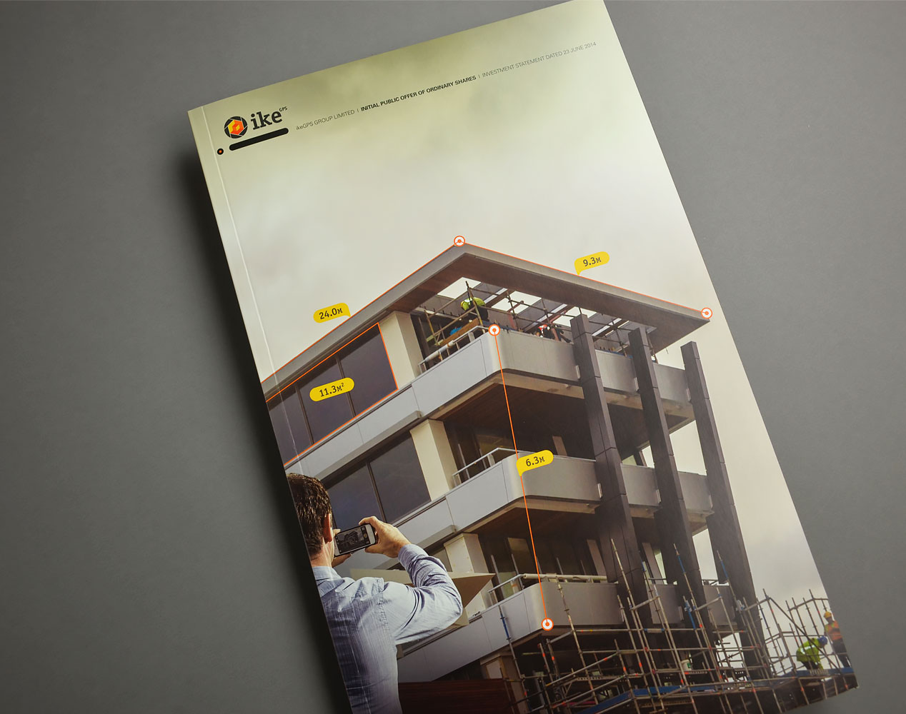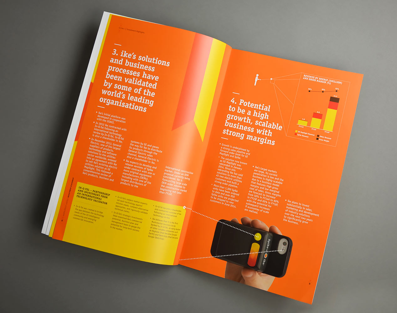 Using imagery, info-graphics, illustrations and key words, the design and structure of the document reflected the business that ikeGPS is in and, right from the cover, ensured that understanding of this new technology was easy to grasp.