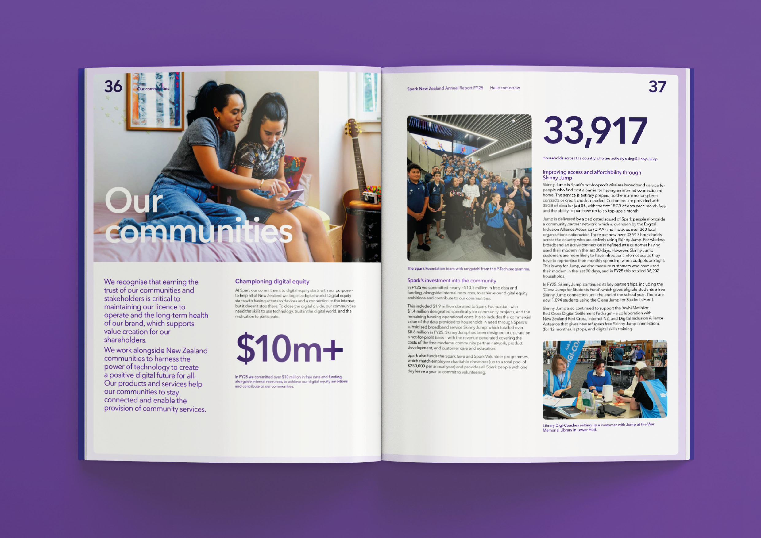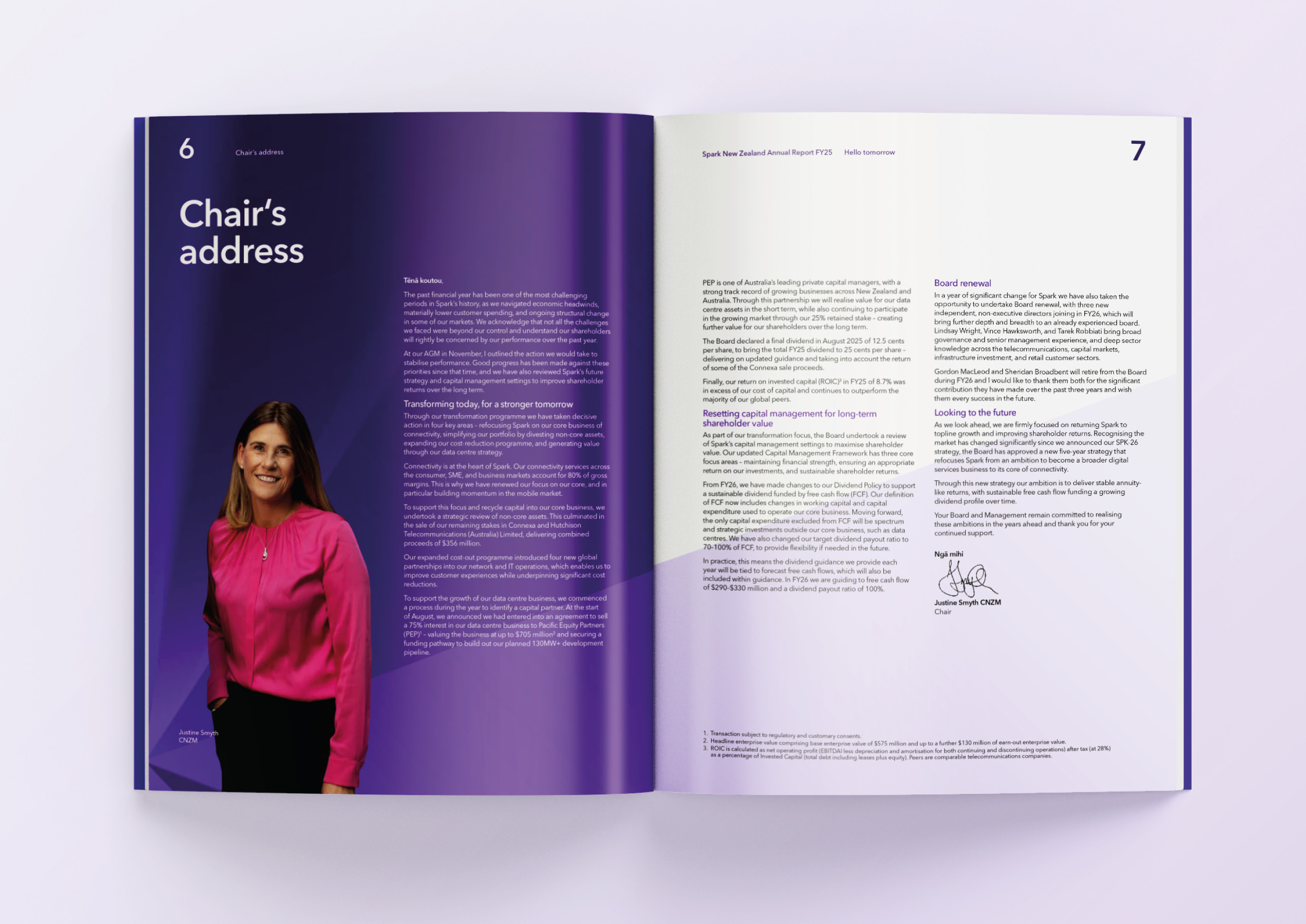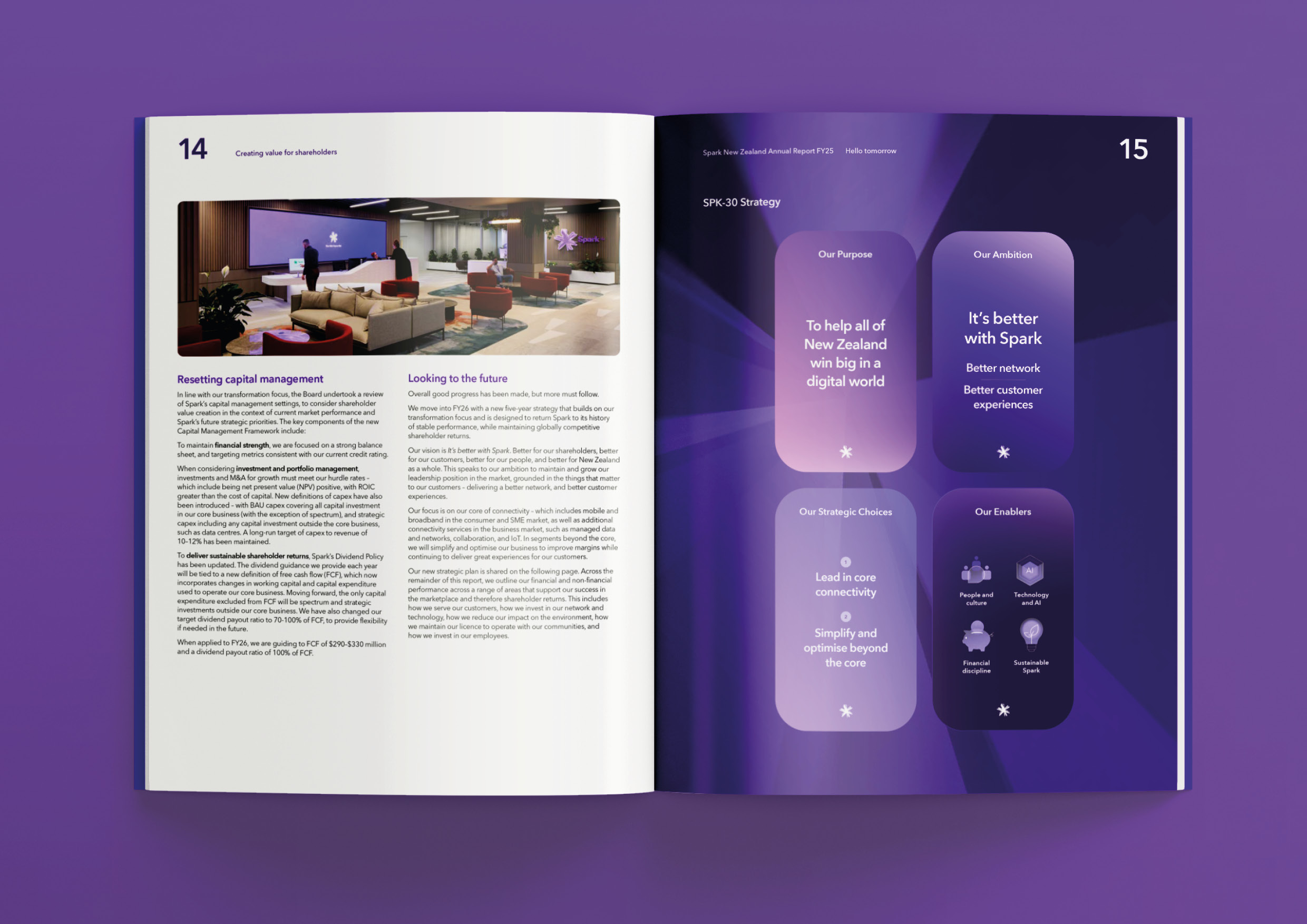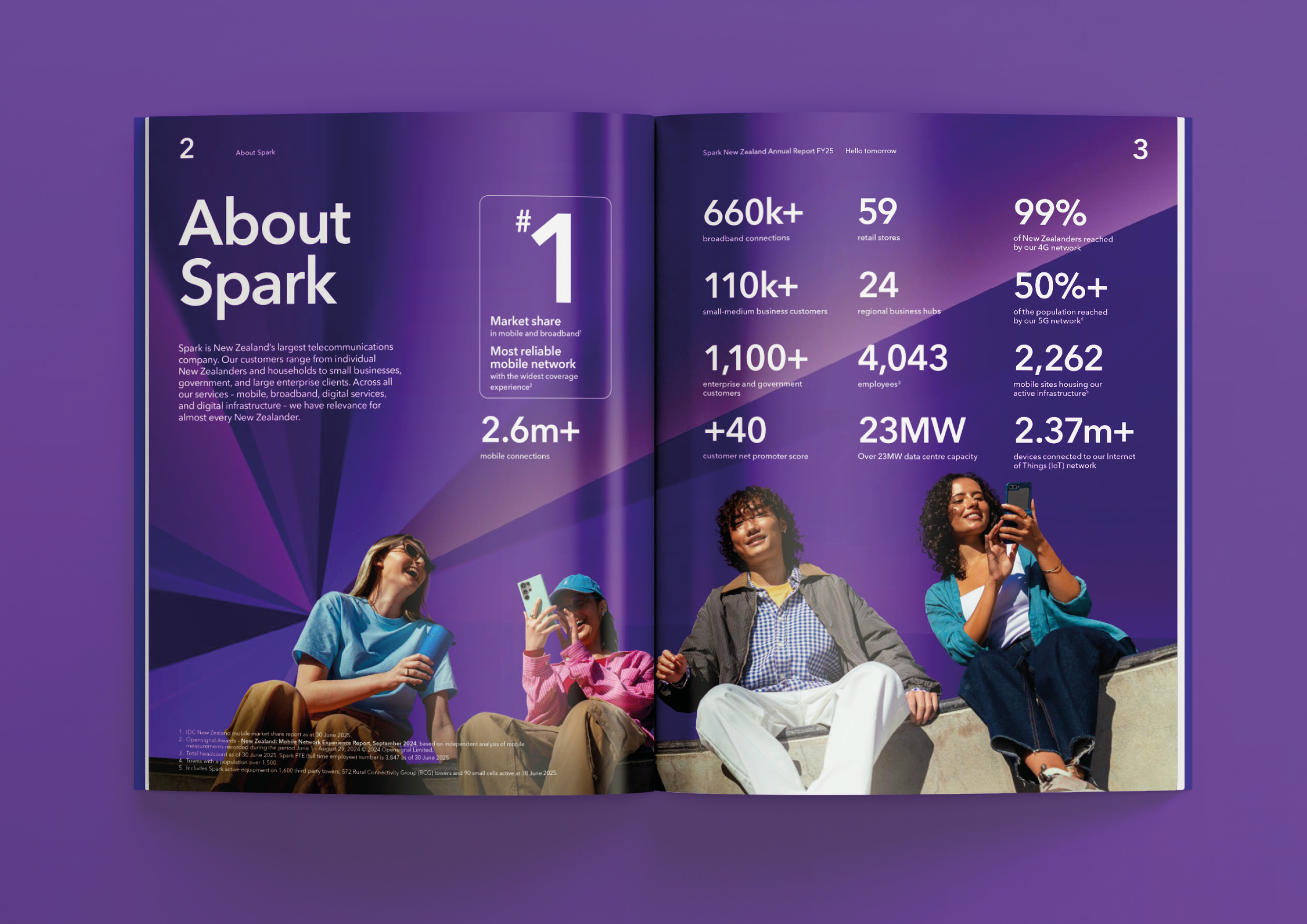 The FY25 Annual Report successfully introduced Spark’s transformation narrative and new strategic direction with confidence and clarity. It marks a transition point for the brand — aligning content, structure and design to communicate change in a disciplined, investor-focused way.