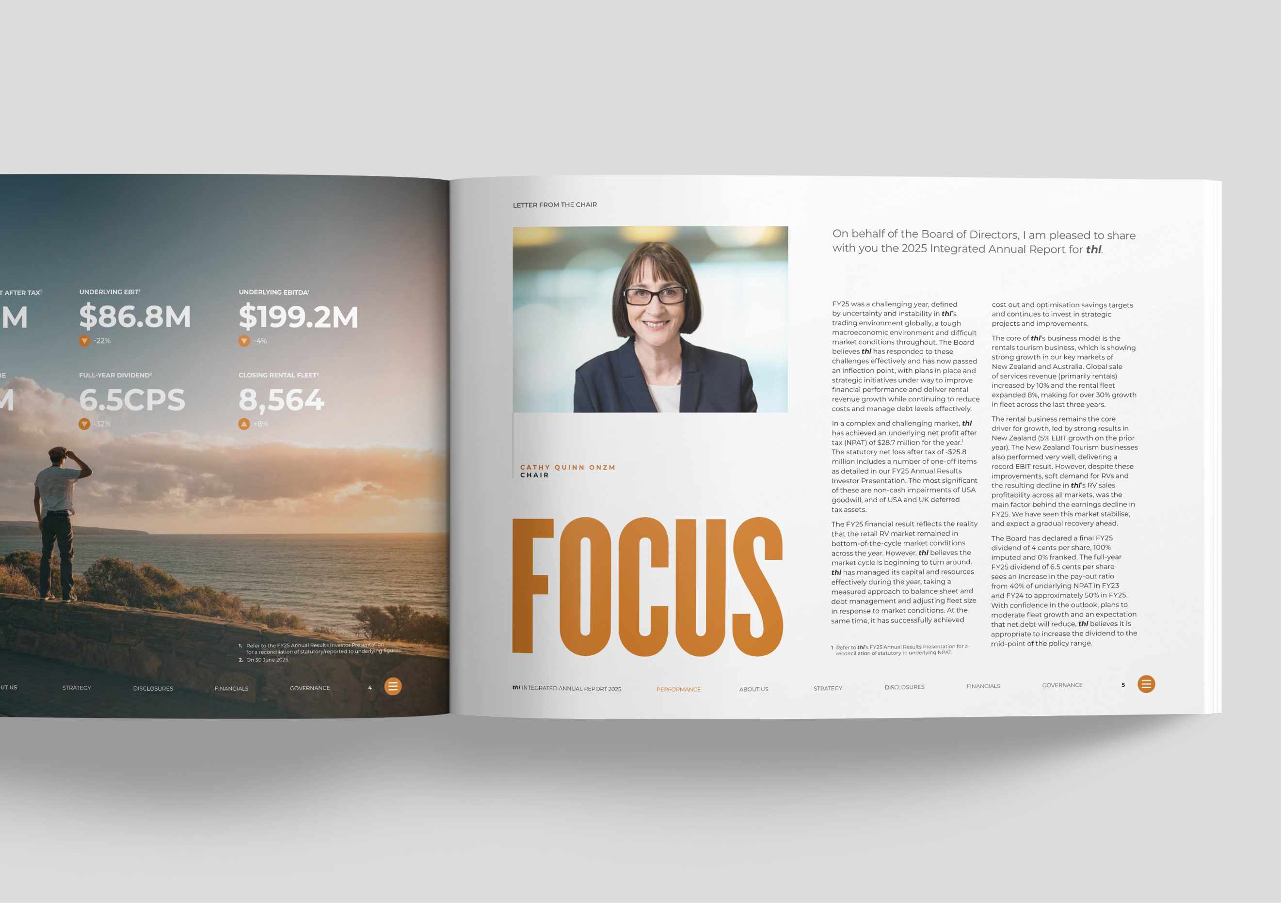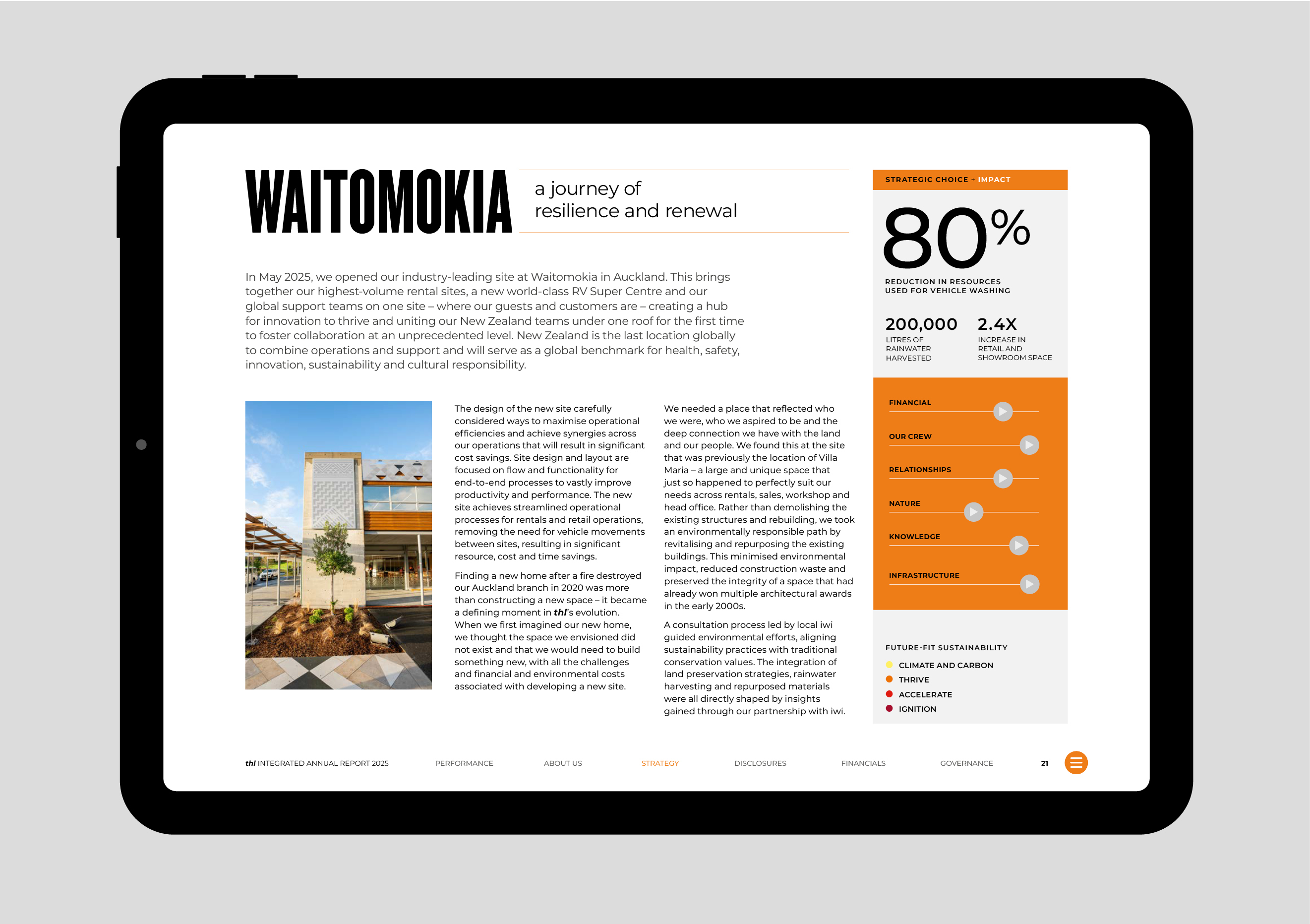 The brief for the 2025 Integrated Report was clear: maintain investor confidence by communicating optimism about the future, highlight the active decisions taken to right-size and reposition the business, and show how thl’s unique structure – a vertically integrated model spanning manufacturing, rentals and sales, across multiple global markets – gives it choices others don’t have. The new Auckland global HQ, symbolising unity and readiness, was also to feature as a tangible signal of confidence in the road ahead.